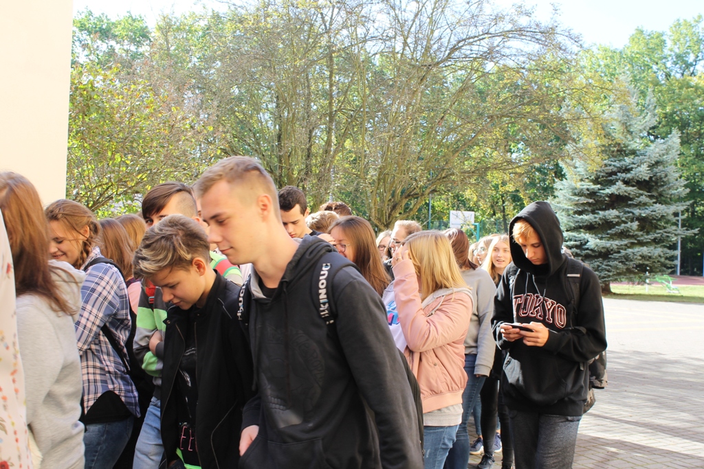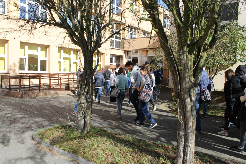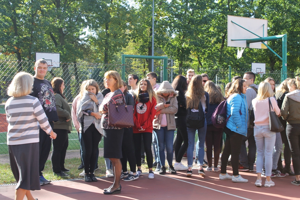 Ewakuacja przebiegała sprawnie i w zorganizowany sposób. Uczniowie w sposób spokojny, szybko wychodzili grupami pod opieką nauczycieli i udawali się na miejsce zbiórki.